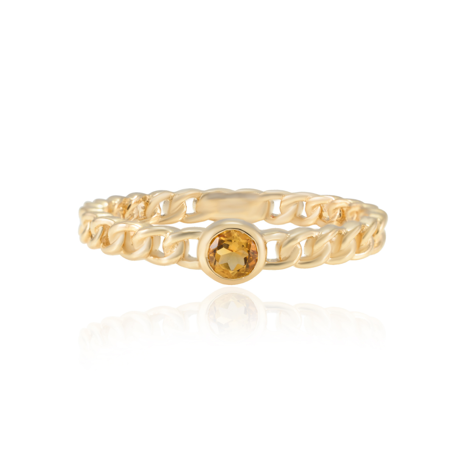 Simple yet Classy chain solid gold rings suit every mood and occasion. This stackable ring features a pretty yellow round cut Citrine gemstone and a cool curb chain design inspired by our best-selling Wilder Collection.