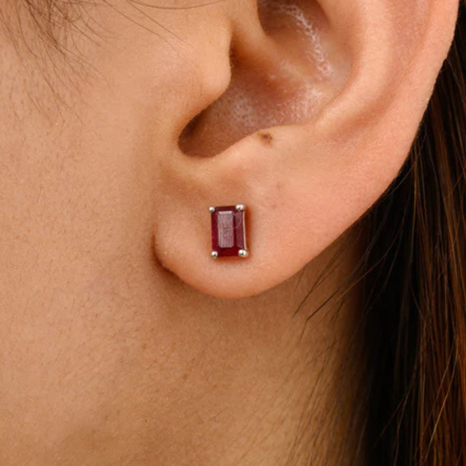 Dainty Natural Ruby Gemstone Stud Earrings for Mom in 14K Gold to make a statement with your look. You shall need stud earrings to make a statement with your look. These earrings create a sparkling, luxurious look featuring baguette cut ruby.