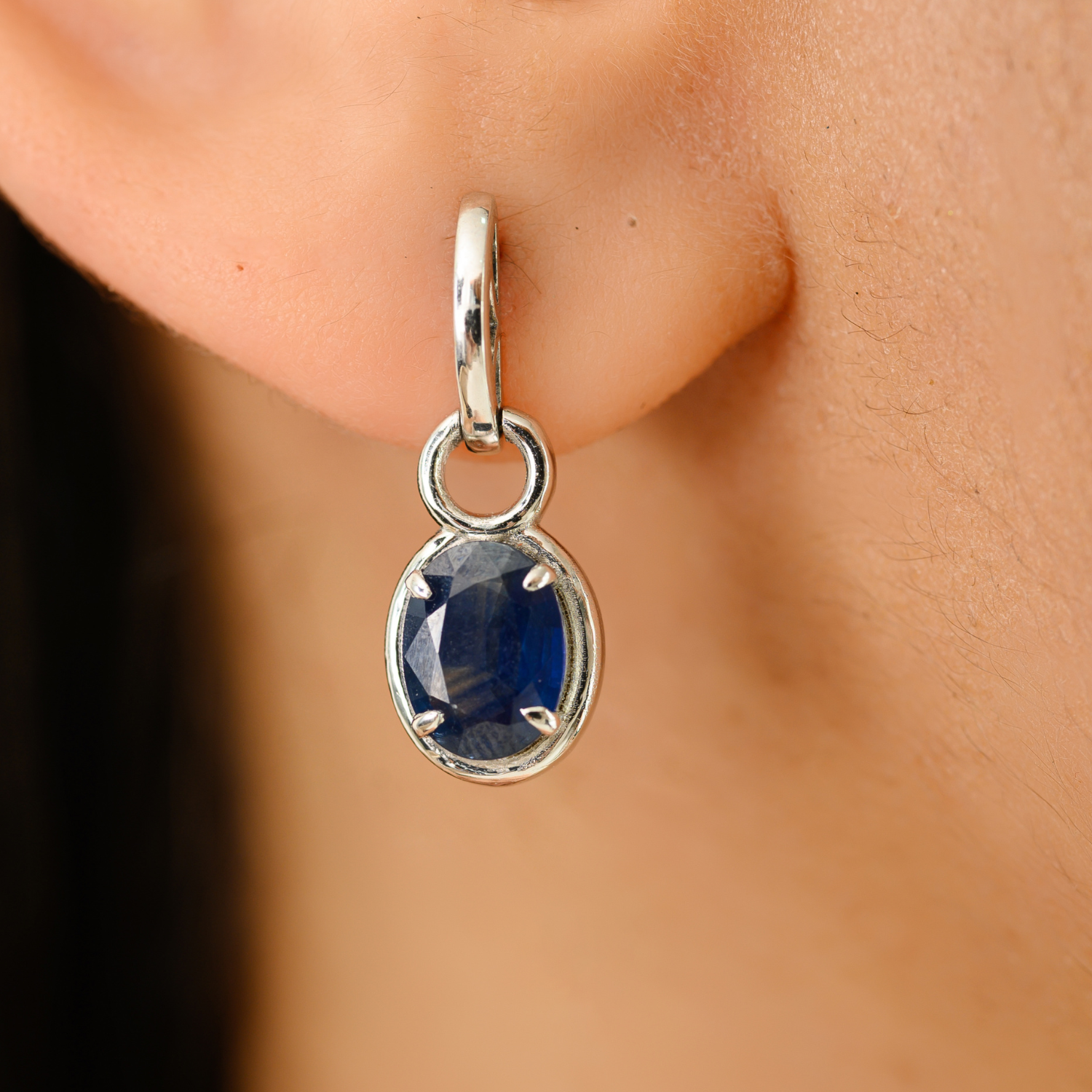 Arrived quickly and in elegant packaging. The earring sits perfectly and the blue sapphire, sapphire stones are well matched.