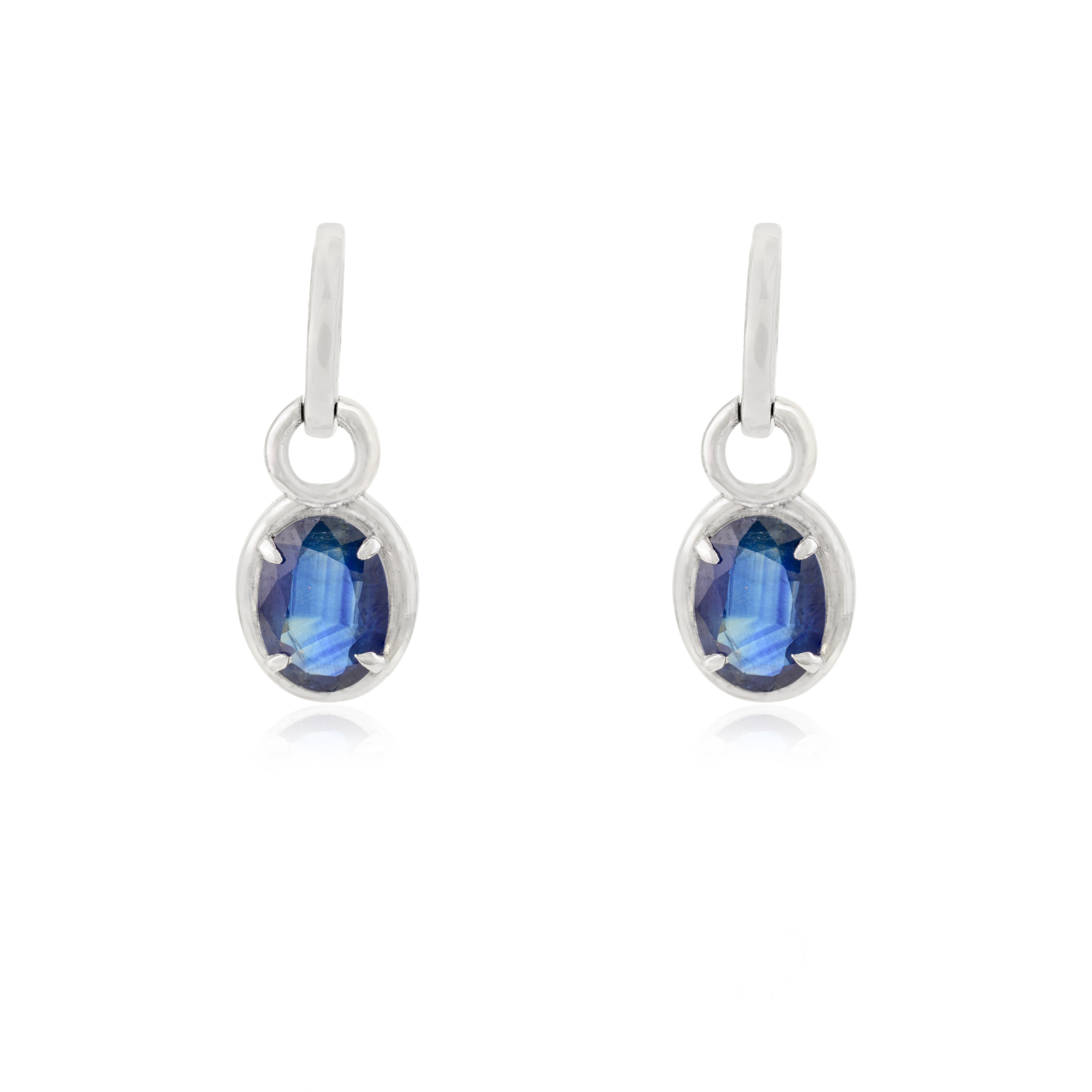 Timeless elegance meets everyday sophistication in these exquisite drop earrings, crafted in luminous 14K white gold. Each earring features a richly hued, oval-cut blue sapphire—totaling 2.82 carats—suspended gracefully from a sleek, minimalist hook.