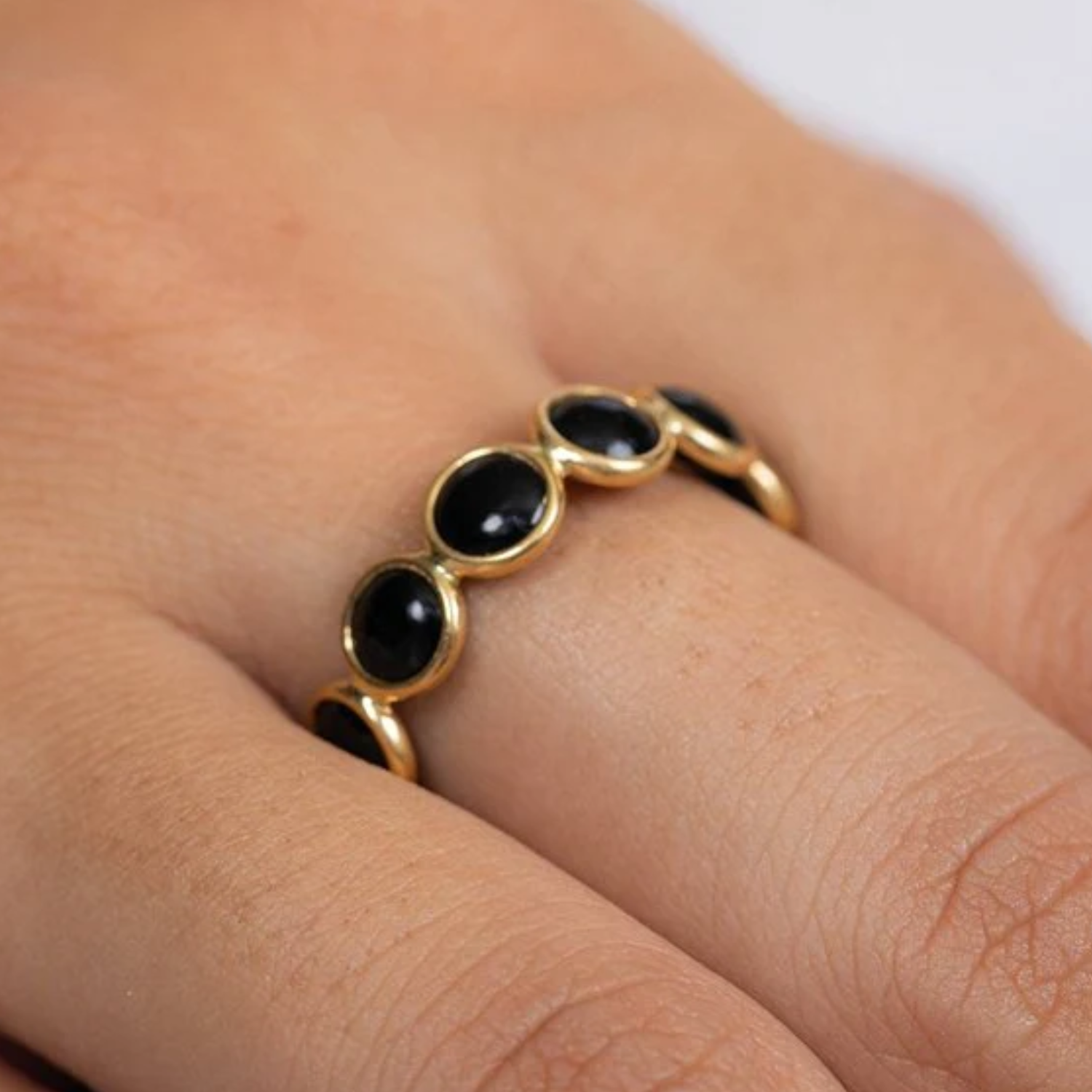 Elevate your most basic outfit with our stunning Eternity Bands. The contrasting gemstones add a unique touch and enhance the overall look. The play of multiple colors adds a very distinct yet playful touch.