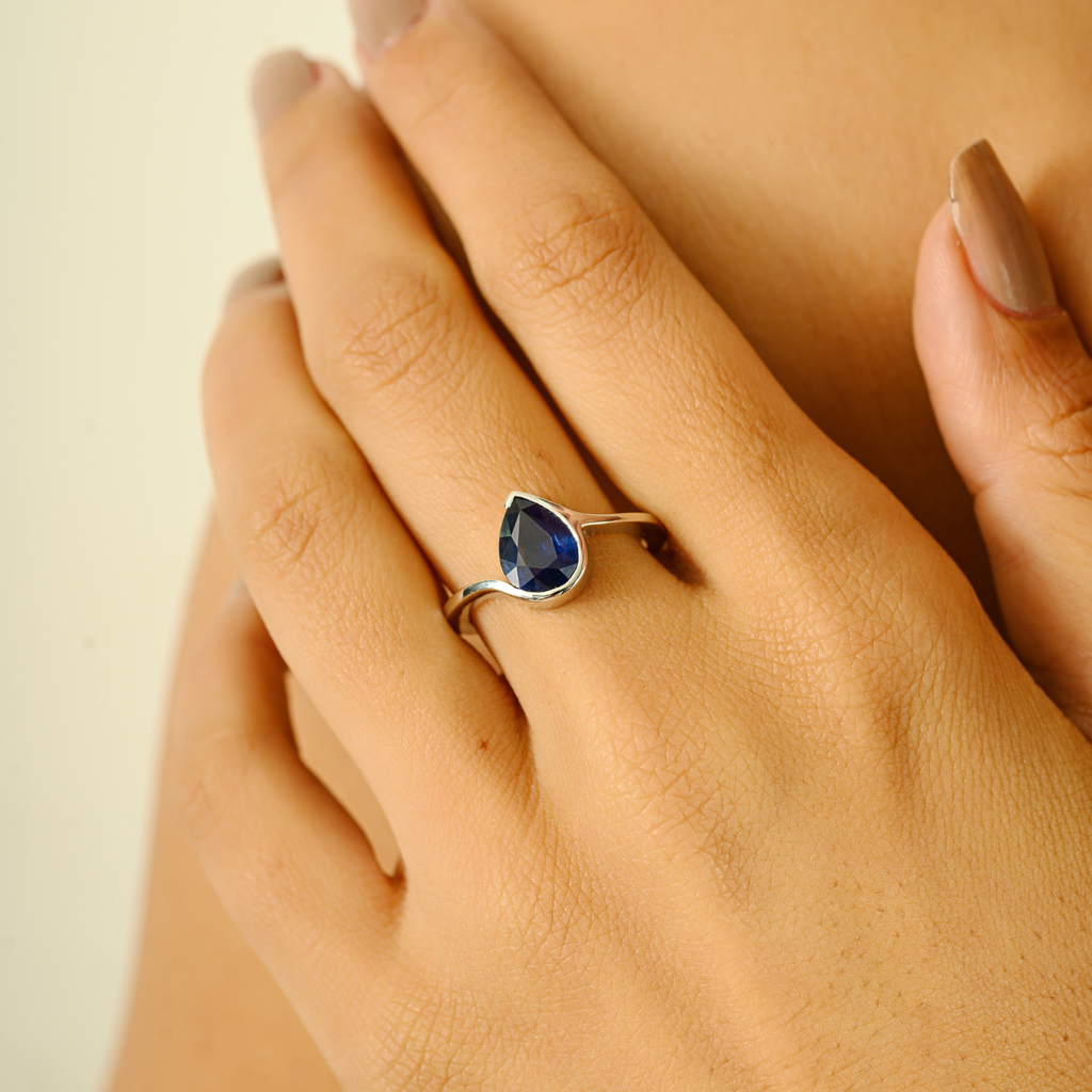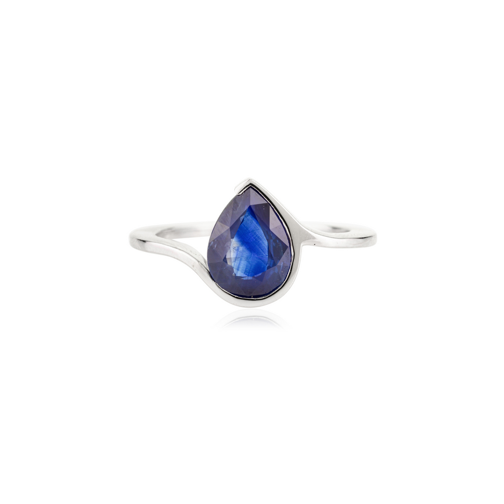 A stunning blend of elegance and simplicity, this ring is crafted in luxurious 18k white gold and features a captivating pear-shaped sapphire weighing 1.58 carats. The deep blue hue of the sapphire is beautifully complemented by the warm gold setting, while the clean bezel mount and gracefully contoured band offer a modern yet timeless appeal. Perfect as a statement piece or a unique engagement ring.